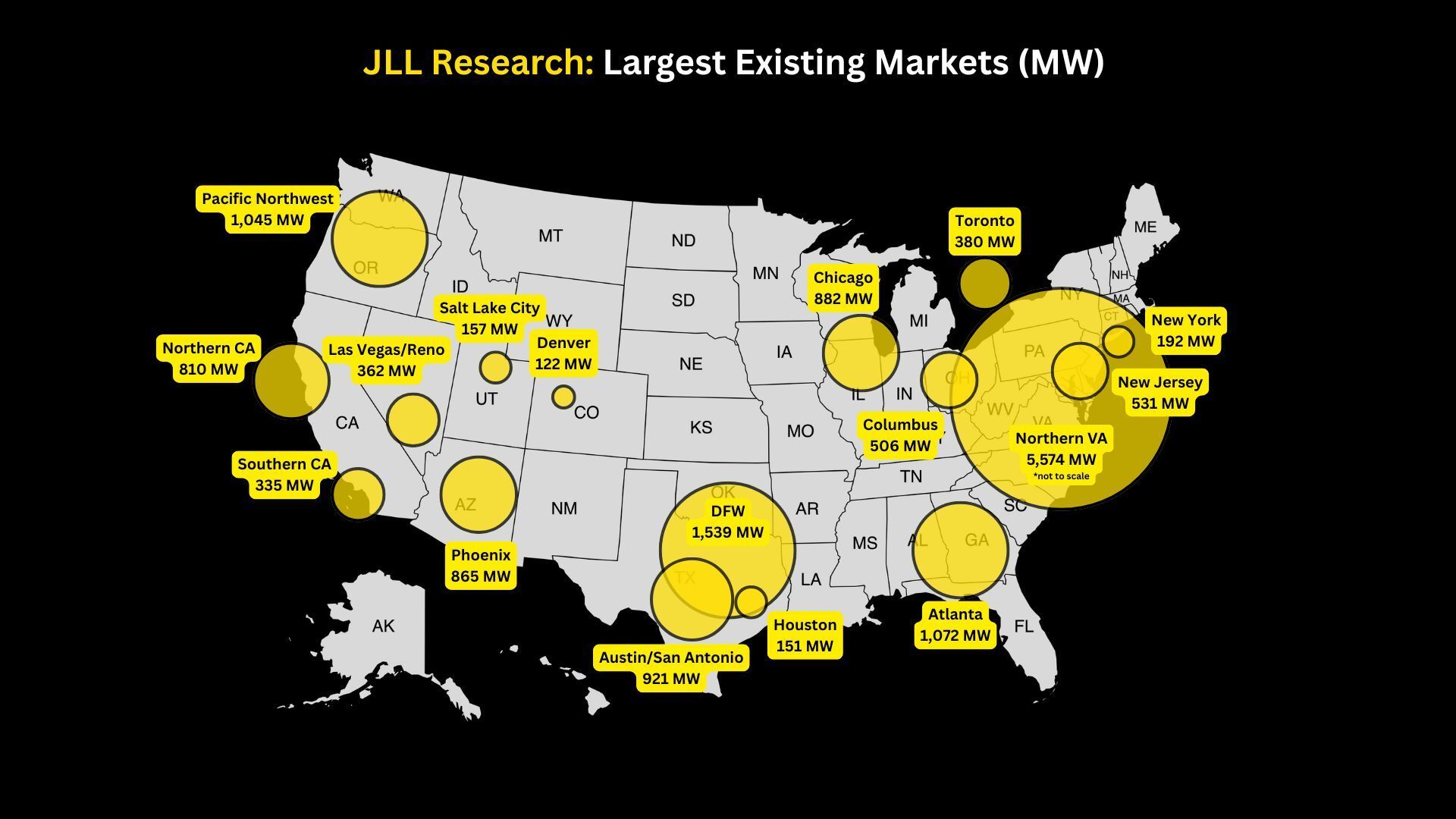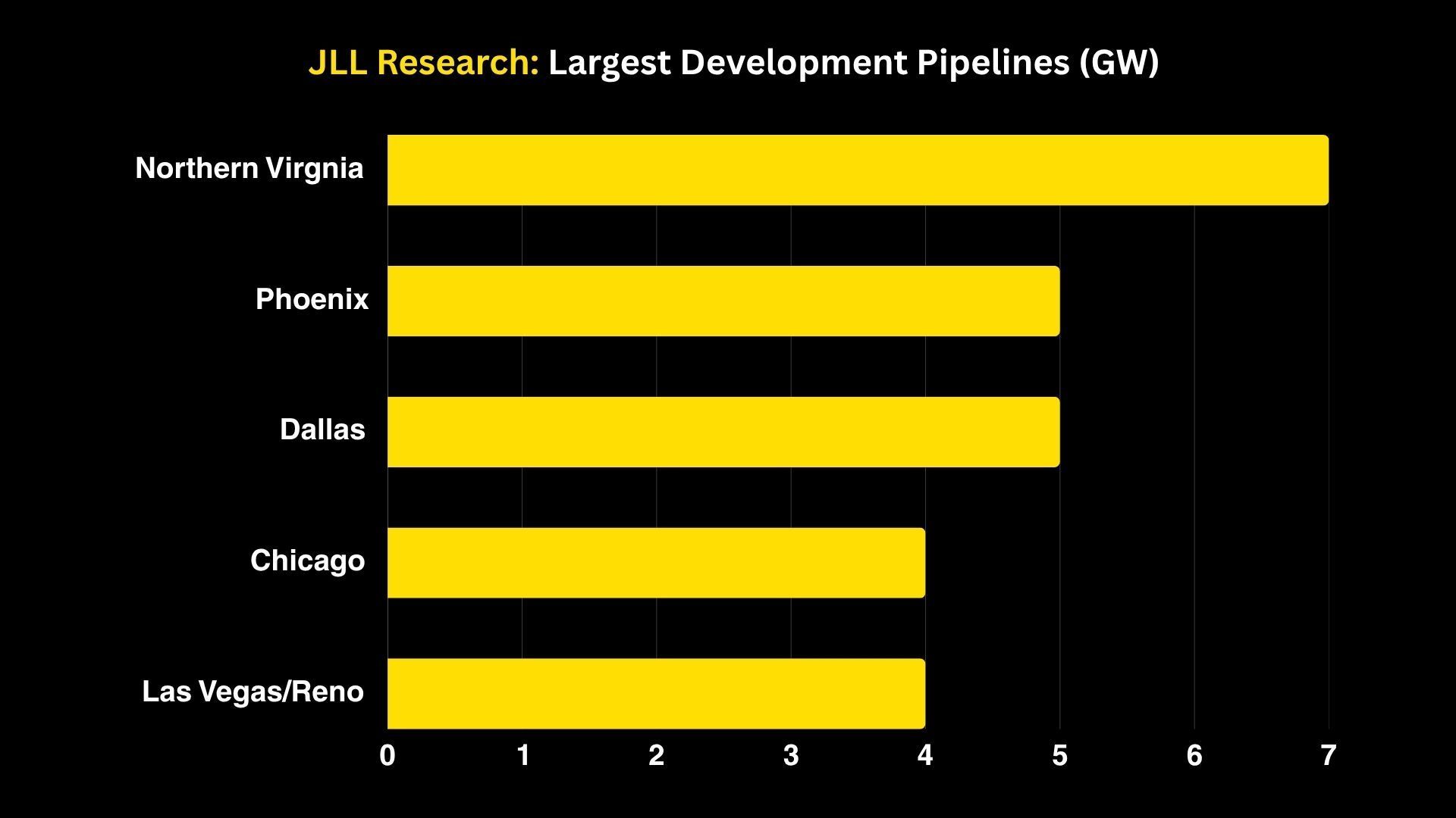 📊 JLL Data: In just the first half of 2025, 50% of all leases (known as absorption) occurred in Northern Virginia and Dallas combined.